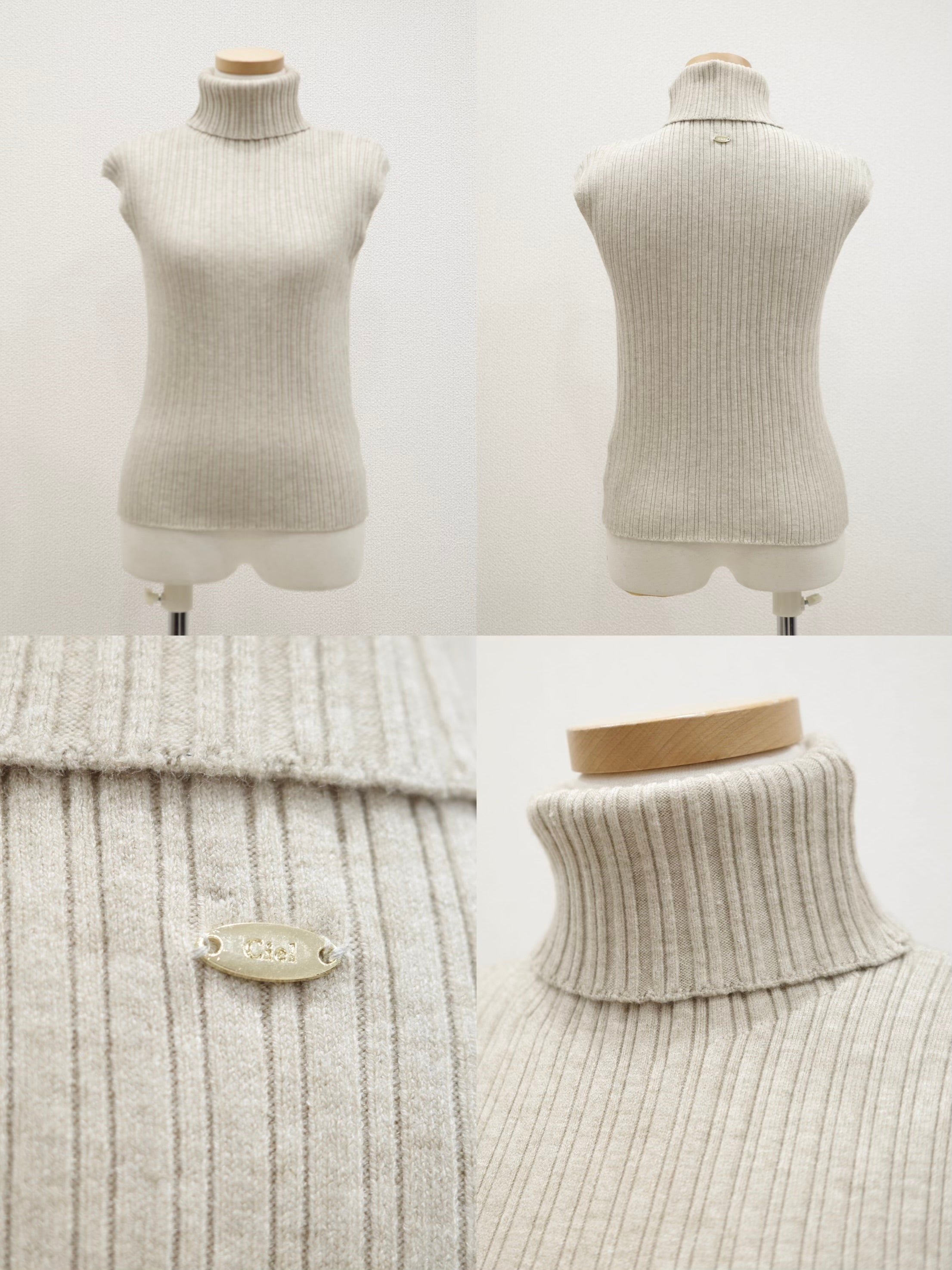 ベーシックなのに上品、着回し力抜群のノースリーブリブニットトップスです。程よくフィットするシルエットとリブ編みの縦ラインが、体のラインをきれいに見せてくれるデザイン。ハイネック仕様で首元はすっきり、ノースリーブで抜け感もあり、秋から春先まで長く活躍するアイテムです。どんなボトムとも合わせやすく、カジュアルにもきれいめにも◎ジャケットやカーディガンのインナーとしても使える、1枚あると便利な着映えアイテムです。