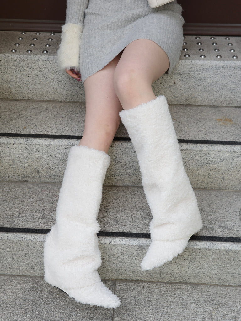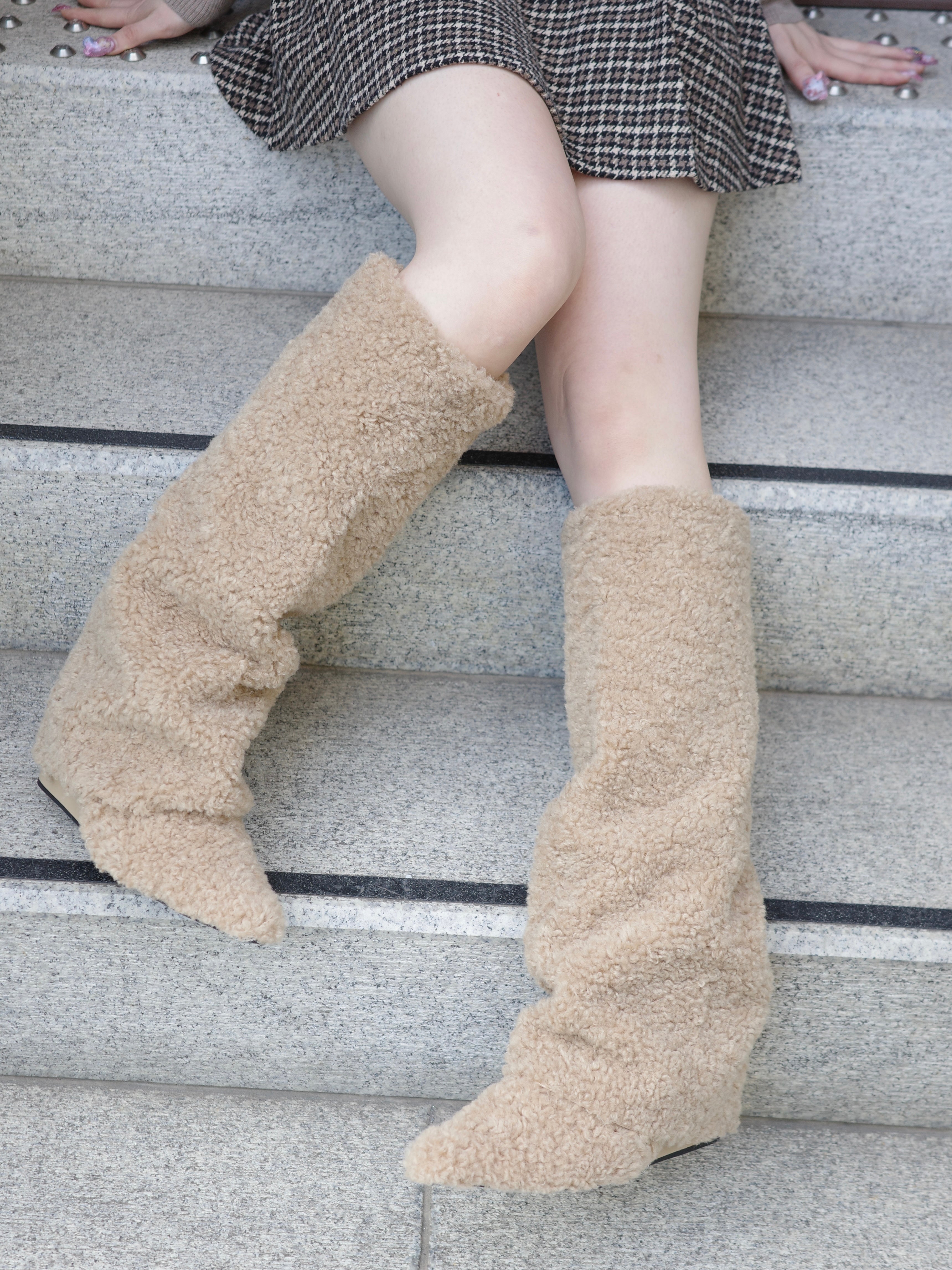 もこもこの素材感が目を引くファーブーツです。全体にあしらわれたファーの存在感は抜群ながらに、いろんなスタイルに馴染みます。軽やかな履き心地で、ミニ丈のボトムスと合わせれば脚長効果もばっちり。カジュアルな着こなしにはもちろん、あえて綺麗めワンピースと合わせてもかわいい♡寒い日も気分が上がる、主役級ファーブーツです。