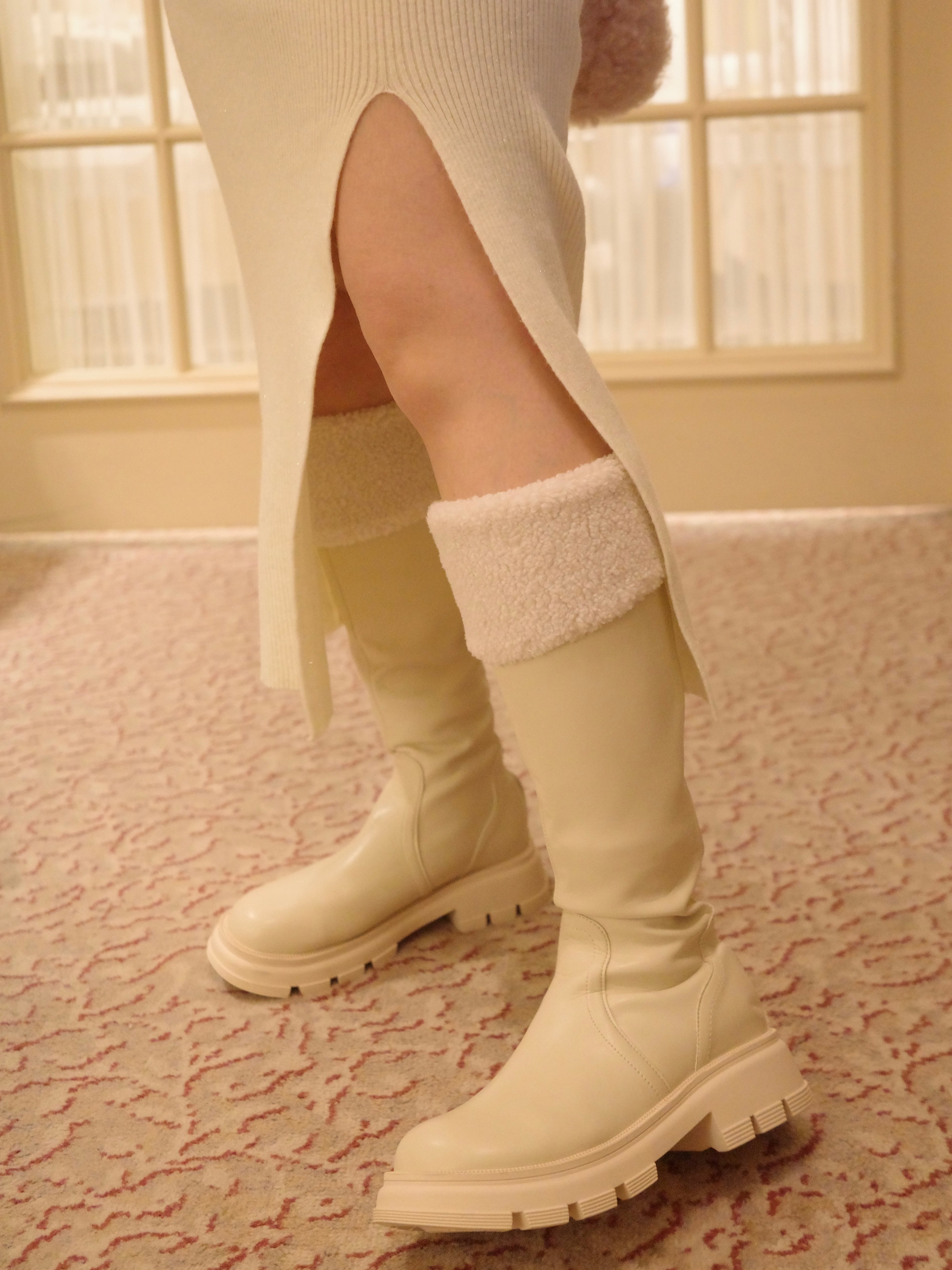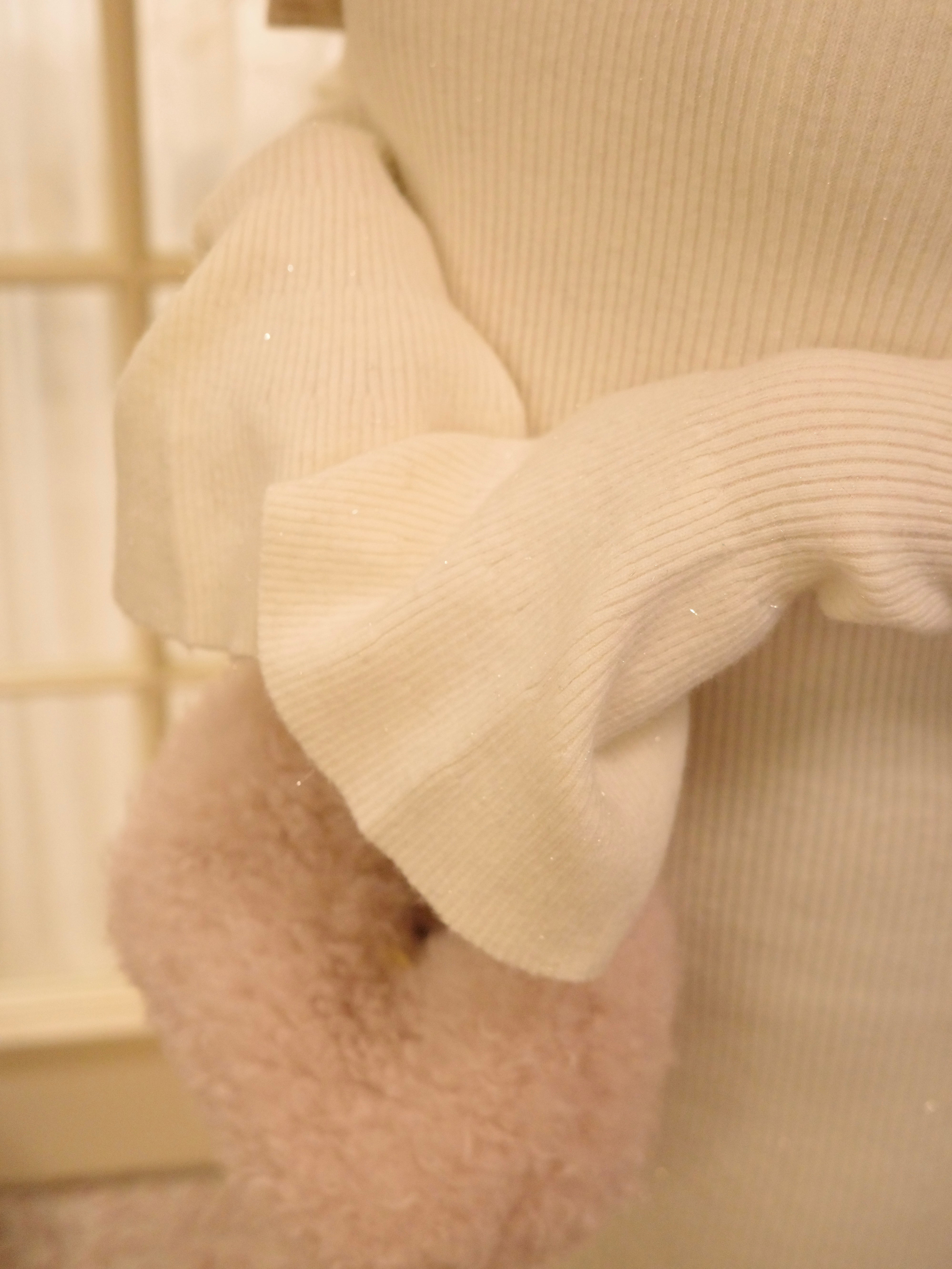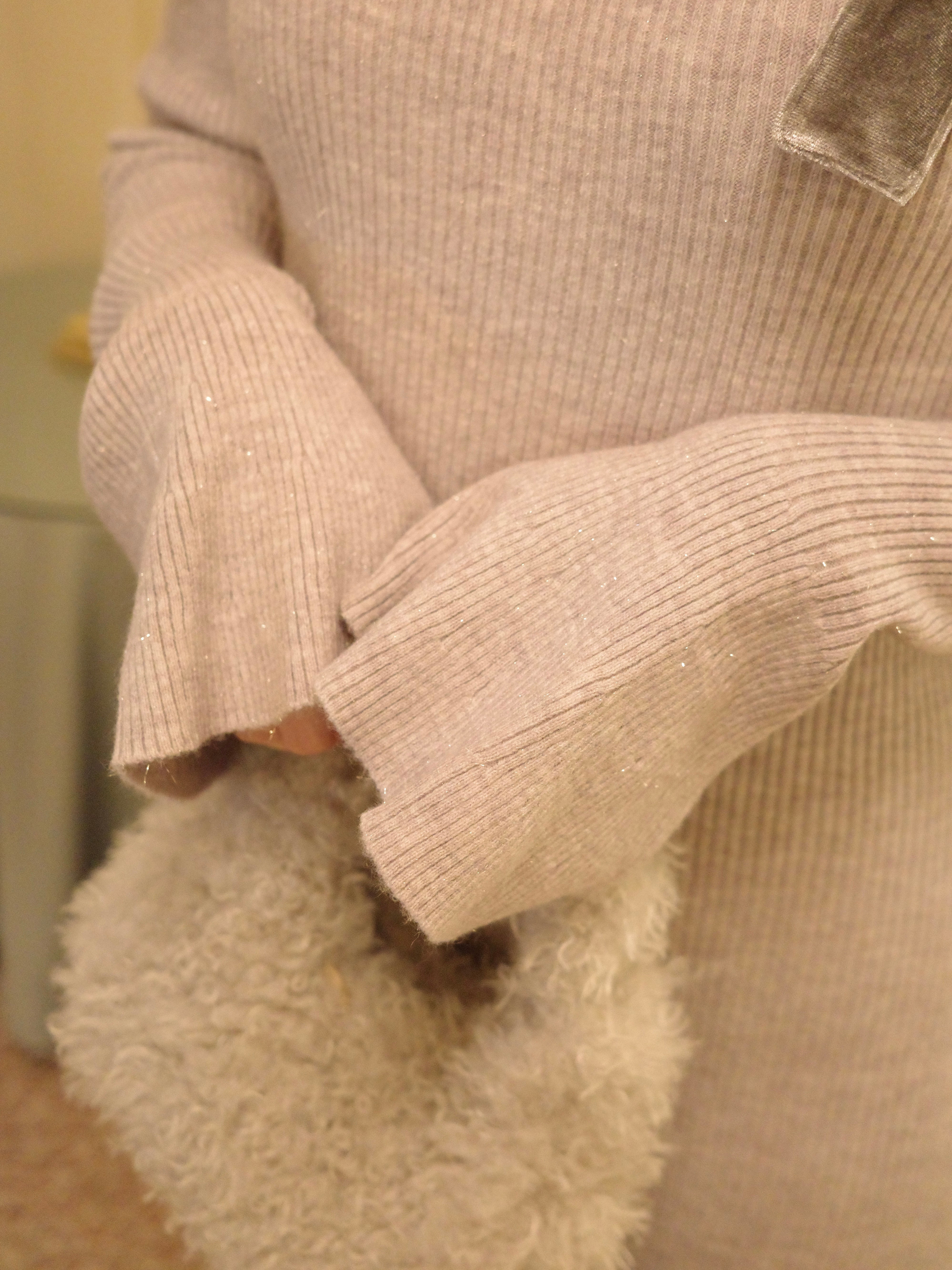 ラメ糸を織り込んだリブニット素材を使用し、動くたびにさりげなくきらめくデザインに。