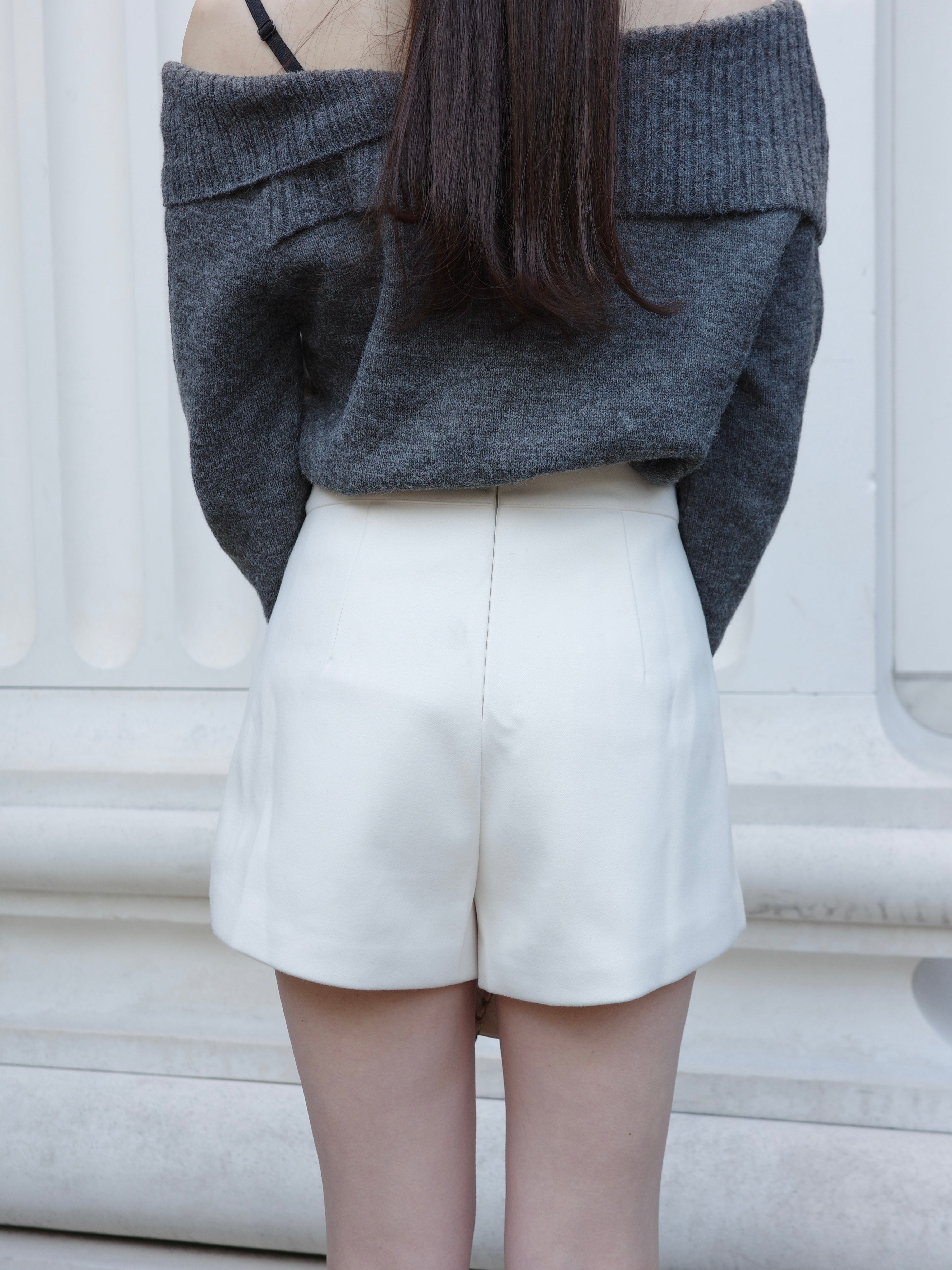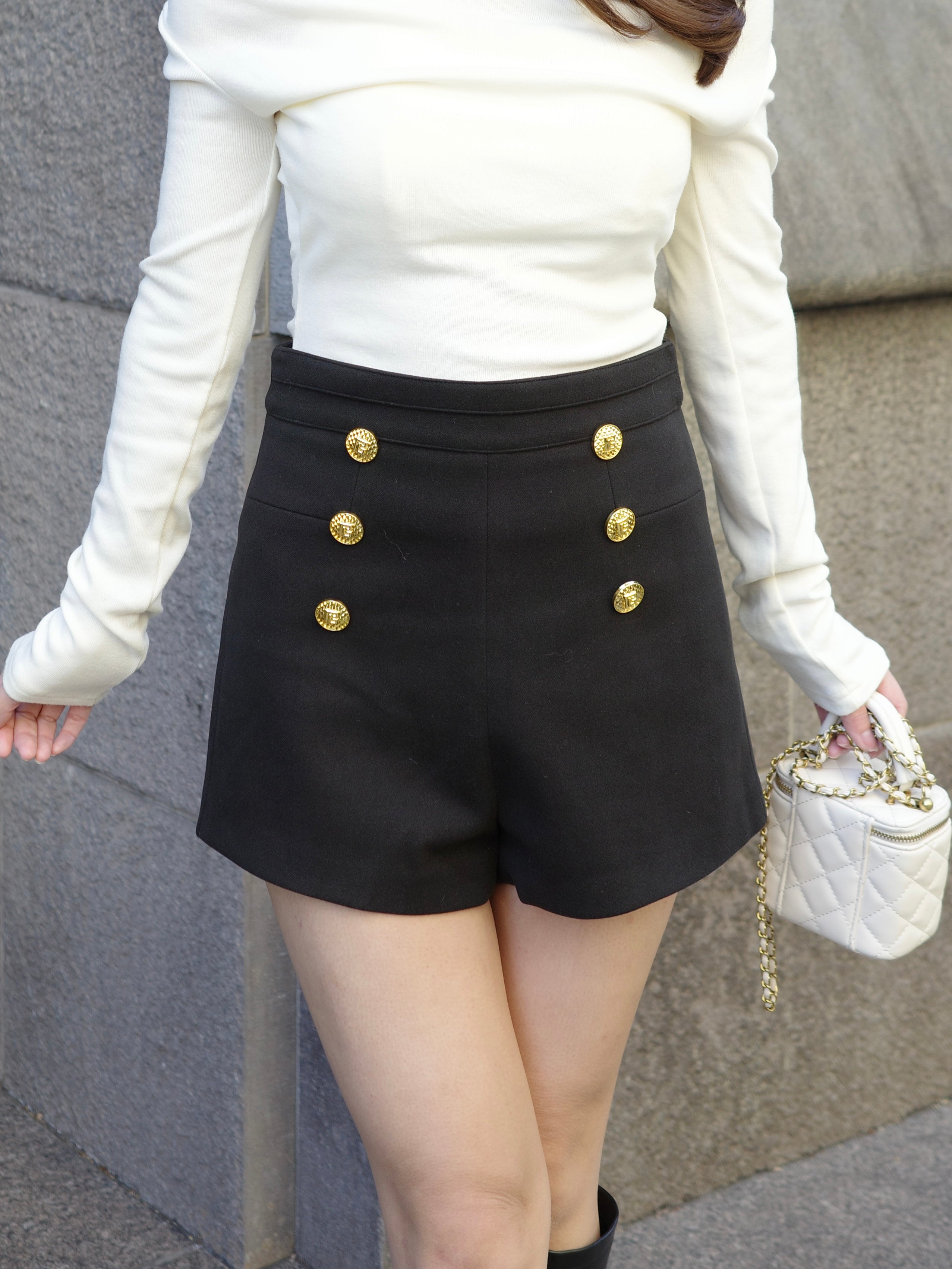 ハイウエストダブルボタンショートパンツ