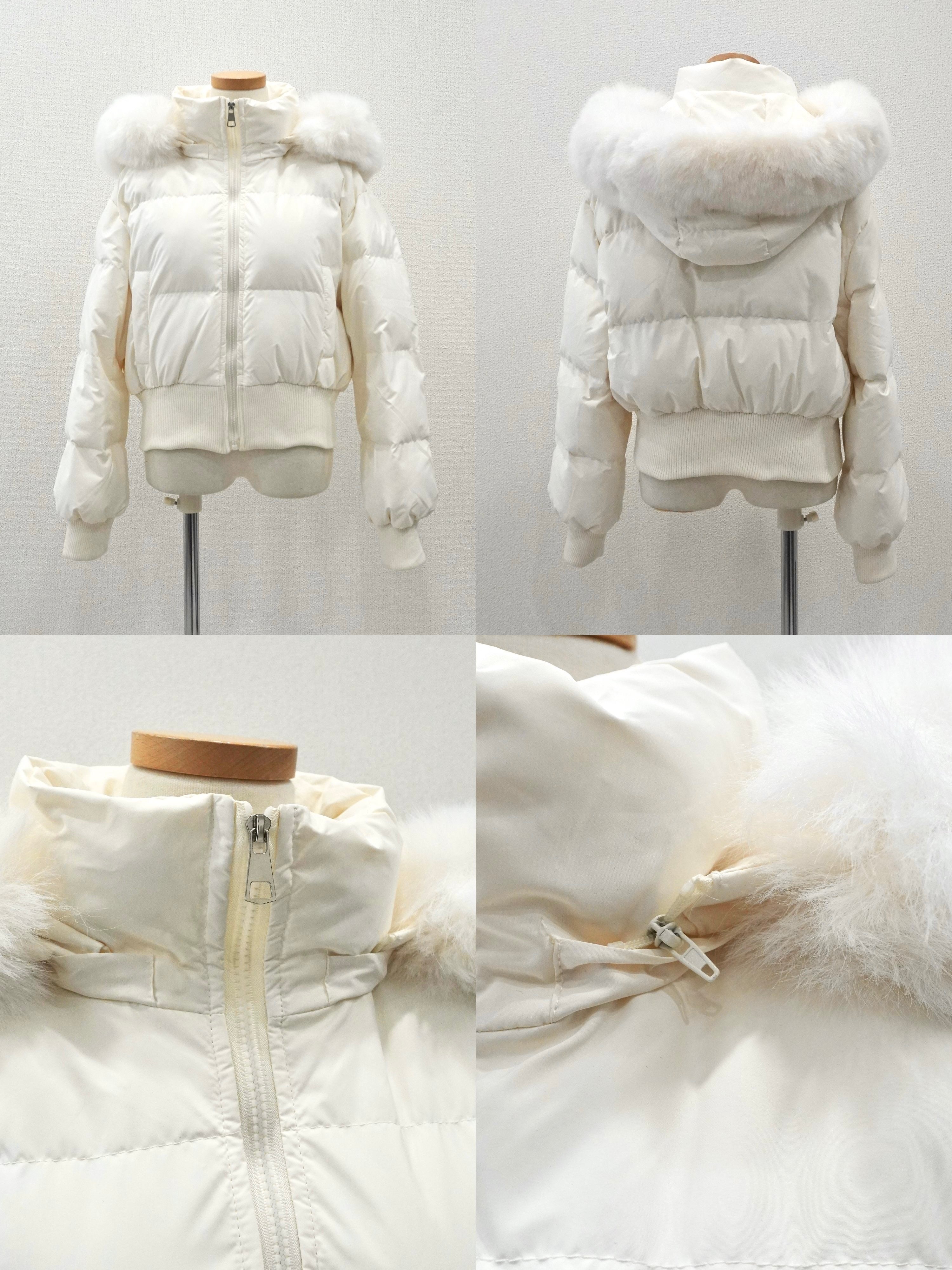 ショート丈のダウンジャケットです。ふんわりとしたシルエットとボリュームのある袖が可愛らしさを引き立てつつ、ウエストはキュッとリブで引き締めてくれます。流行りのクロップド丈でハイウエストボトムと相性抜群◎ ファーで華やかさを演出しつつシルエットで華奢見え&スタイルアップ効果も叶う1枚です。