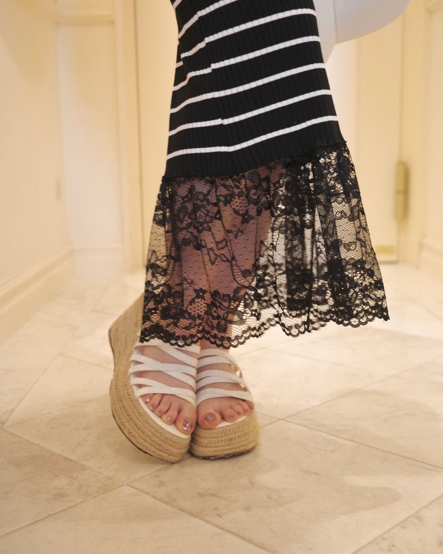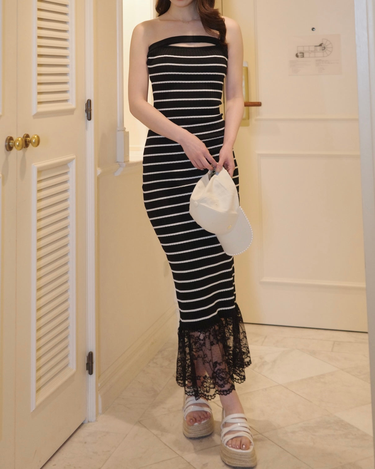 ボーダーレースロングワンピース